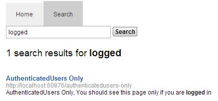 public class SearchResultsByPermissions : SearchResults{}public class SearchResultsByPermissions : SearchResults{ protected override void InitializeControls(GenericContainer container) { Label resultsStats = this.ResultsStats; //this is the original localized stats message. It shows all the results var resultsStatsMessage = resultsStats.Text; base.InitializeControls(container); if (string.IsNullOrEmpty(this.Query)) { this.ResultsStats.Text = string.Empty; return; } int numberOfAllResults = 0; SearchResults.ISearcher searcher = this.GetSearcher(); //these are all the results (not filtered by permissions) var allResults = searcher.Search(this.Query, this.IndexCatalogue, 0, 0, out numberOfAllResults); if (allResults == null) { return; } //here we will store only the results we have permissions to see List<IDocument> securedResultSet = new List<IDocument>(); foreach (var document in allResults) { var type = document.GetValue("ContentType"); var ID = new Guid(document.GetValue("OriginalItemId")); if (TypeResolutionService.ResolveType(type) == typeof(PageNode)) { var manager = PageManager.GetManager(); //suppress the security checks so the code can be executed even if //the current user doesn't have enough permissions manager.Provider.SuppressSecurityChecks = true; var page = manager.GetPageNode(ID); if (page != null) { ISecuredObject securedObject = (ISecuredObject)page; if (SecurityExtensions.IsSecurityActionTypeGranted(securedObject, SecurityActionTypes.View)) { securedResultSet.Add(document); } } manager.Provider.SuppressSecurityChecks = false; } } var numberOfSecuredSearchResults = securedResultSet.Count; char[] chrArray = new char[] { '\"' }; string str = this.Query.Trim(chrArray); resultsStats.Text = string.Format(resultsStatsMessage, numberOfSecuredSearchResults, HttpUtility.HtmlEncode(str)); this.ConfigurePager(numberOfSecuredSearchResults); this.ResultsList.DataSource = null; int itemsToSkip = this.GetItemsToSkip(); int itemsToTake = this.GetItemsToTake(); ResultsList.DataSource = securedResultSet.Skip(itemsToSkip).Take(itemsToTake); } private int GetItemsToSkip() { if (this.AllowPaging) { int pageNumber = this.GetPageNumber(this.GetUrlEvaluationMode(), this.PageKey, 0, "PageNumber"); if (pageNumber > 0) { return (pageNumber - 1) * this.ItemsPerPage; } } return 0; } private int GetItemsToTake() { if (!this.AllowPaging) { return 0; } return this.ItemsPerPage; }}