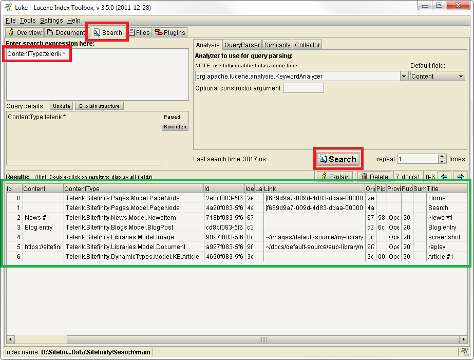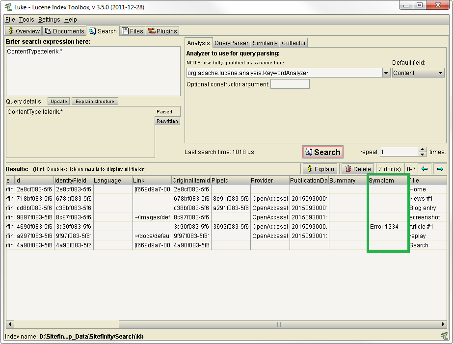 When trying to understand the search results, the first step is often to try to reproduce the issue inside Luke by running a Lucene search query similar with what Sitefinity is running under the hood. Here are the general rules: