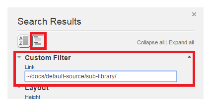 For example, filtering documents stored in a particular library requires to filter for results whose "Link" field begins with, say "~/docs/default-source/sub-library/". A look at the Link top terms in the Overview tab however indicates that this field is broken down by words. In other words, it is not possible to add a Lucene query filter that looks for results whose Link field starts with "~/docs/default-source/sub-library/". It is thus best to filter the elements after the search result. Below is an implementation example: