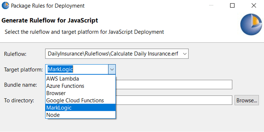 In Corticon Studio, we can generate decision services with just two clicks by using the MarkLogic target platform as shown below: