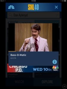 The full experience was available with an SNL app where you could also see custom recommendations that teed up a series of sketches and let you swipe by them. It’s what the NBC folks called a mix of Tinder and Pandora … and it really was addictive.
