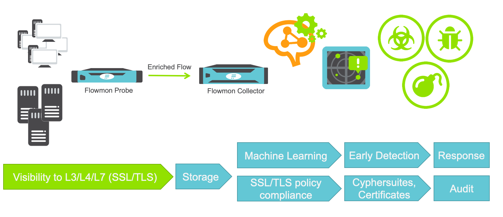 At the start of 2019, Flowmon added into its portfolio visibility into encrypted communication, which brought a breakthrough to the industry. Flowmon also developed other methods to analyse encrypted communication by finding patterns and the characteristics of malicious behaviour when malicious code (malware) hides in such communication.