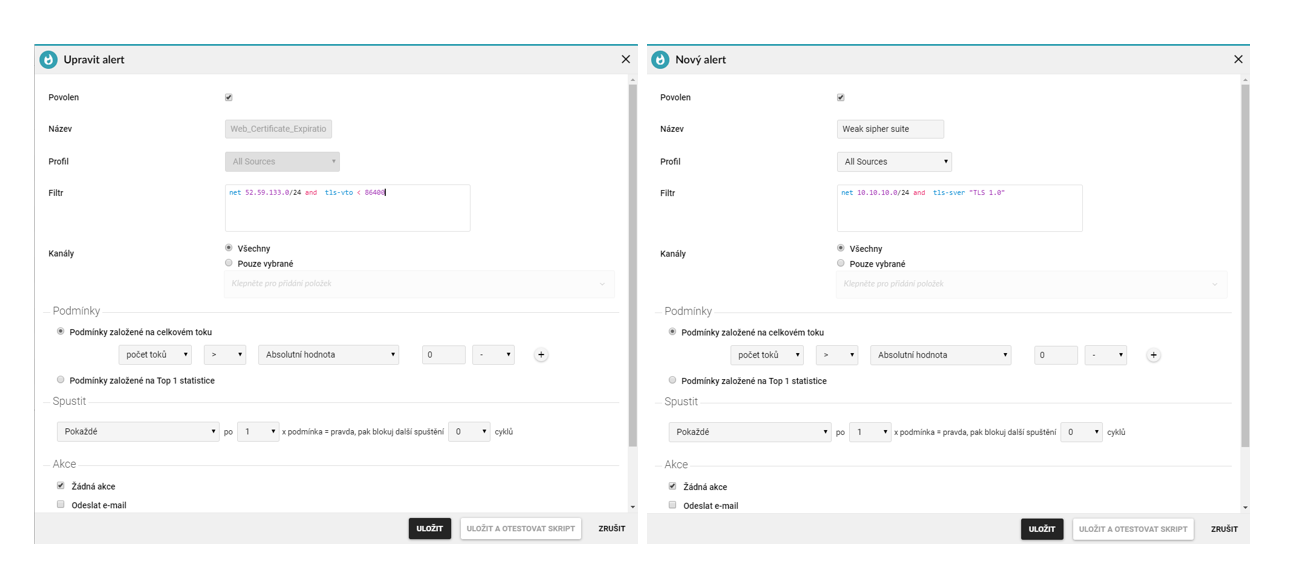 Many companies which want to have secure transmission of information while communicating to their internal systems, but also those who use websites for their presentation, use certificates to secure a HTTPs’ communication, issued by a certification authority, for a given time period. The task of the organisation is to monitor the validity period of the issued certificate to prevent data being unsecured for a period of time. With Flowmon and its visibility into encrypted communication, we can notice the date when the certificate expires. In connection with the possibility of alerting and setting the alert correctly, it would never happen again that this type of communication would be unsecured for a certain period of time, because the system can notify us early enough about a certificate expiring, or even that our network uses weak TLS 1.0 encryption, so we can take corrective measures well in advance.