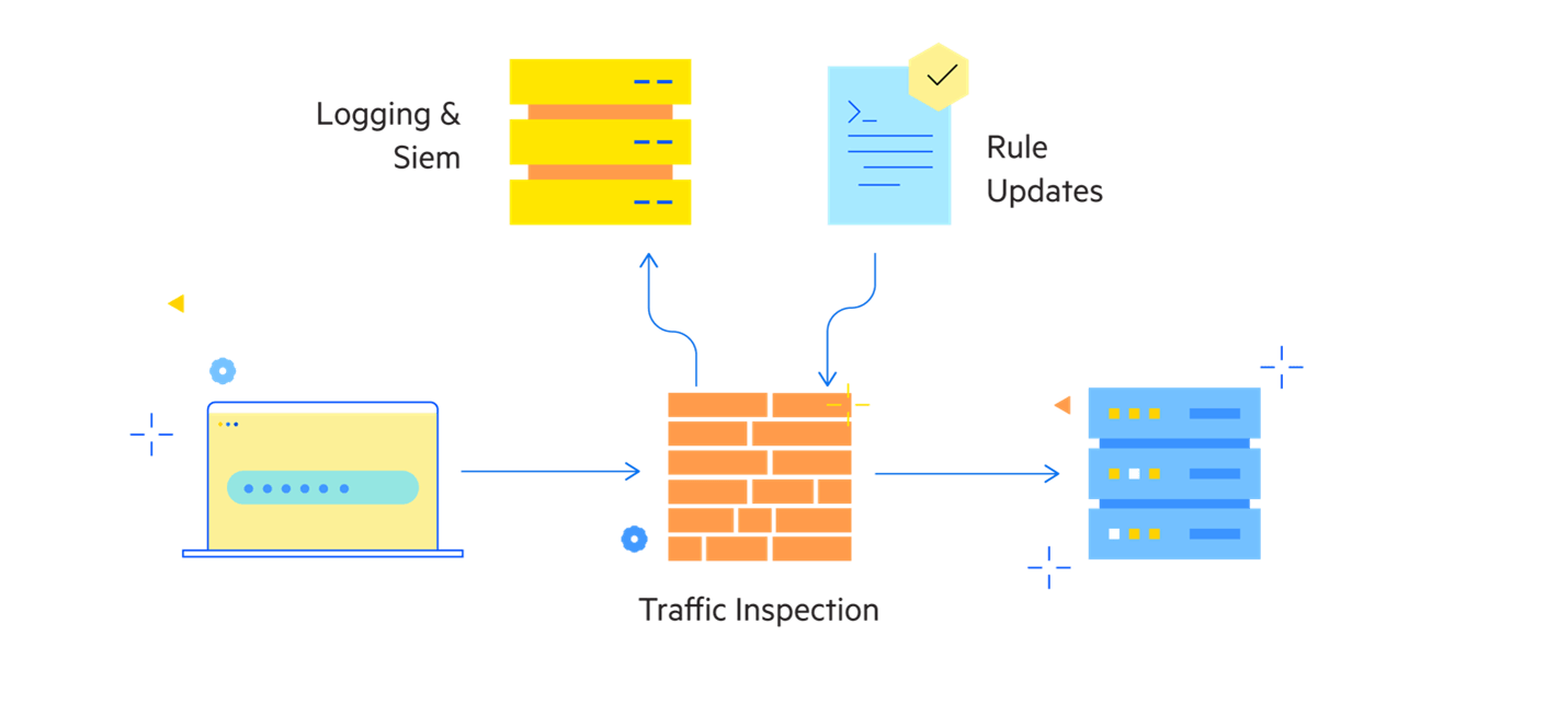 In contrast to traditional firewalls, WAF operates at Layer 7 of the network stack between standard firewalls and web servers, decrypting HTTPS traffic and inspecting the data within. With anomaly detection and lists of attack methods, the web application firewall can block access to web servers when malicious activity is spotted.