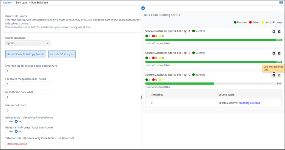 The bulk load process is a fundamental function of Pro2, allowing users to synchronize source and target databases efficiently. However, previous versions of Pro2 needed more real-time feedback on the status of ongoing bulk load operations. There is no visibility into how many tables have been bulk loaded, how many failed and how many are processed. This led to a lack of visibility and uncertainty during the process. Pro2 6.5 addresses this by introducing a live status display feature in the web user interface (UI).