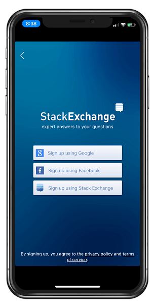 An example of Single Sign-On in an iOS app. The user can use Google or Facebook to authenticate.