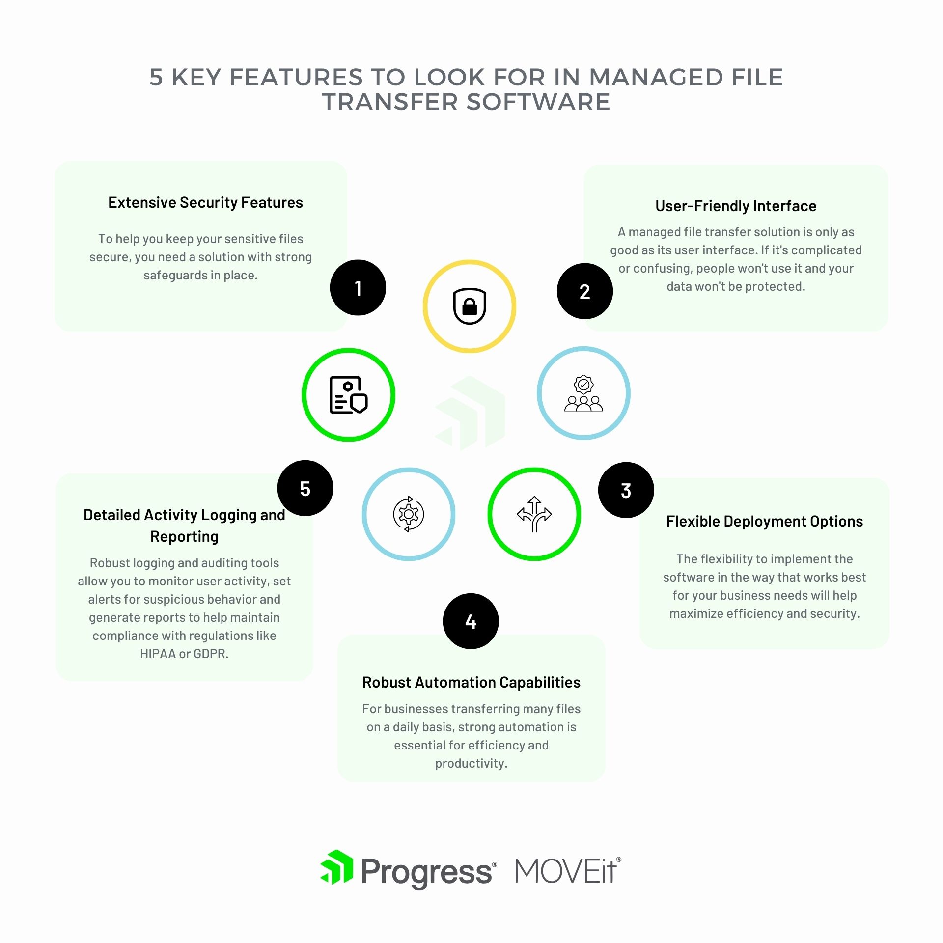 Lesen Sie weiter, um zu erfahren, auf welche Funktionen Sie beim Kauf einer Software für Secure Managed File Transfer unbedingt achten sollten. Nachdem Sie die Optionen eingegrenzt und sich für eine Lösung entschieden haben, können Sie unbesorgt Dateien übertragen und die Sicherheit für Ihre sensiblen Daten verbessern.