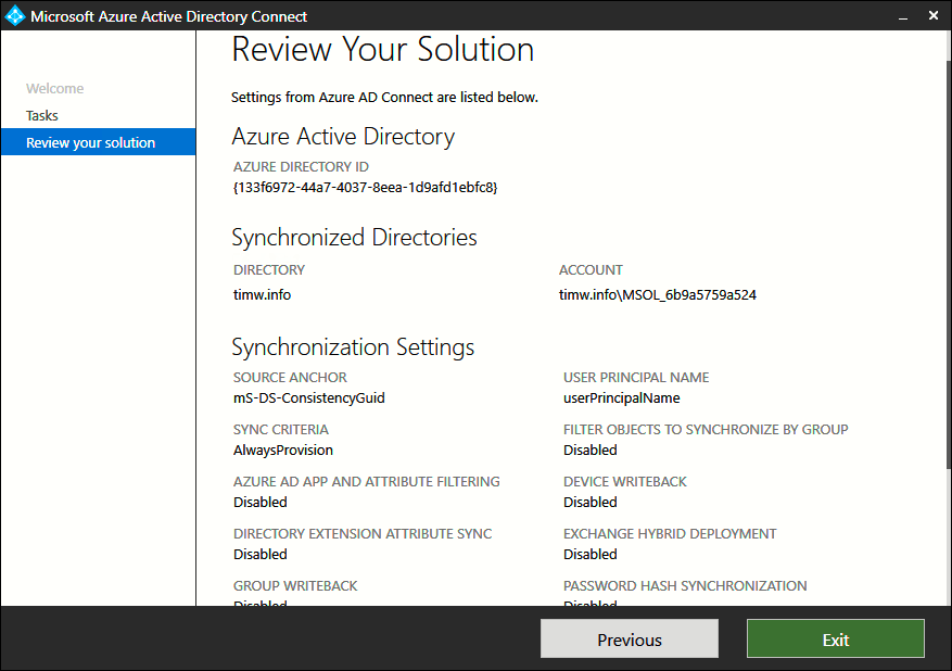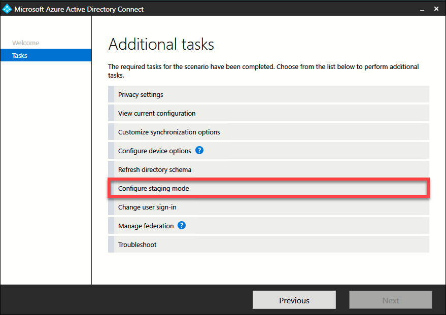 Abbildung 3. Der Bildschirm Zusätzliche Aufgaben von Azure AD Connect.