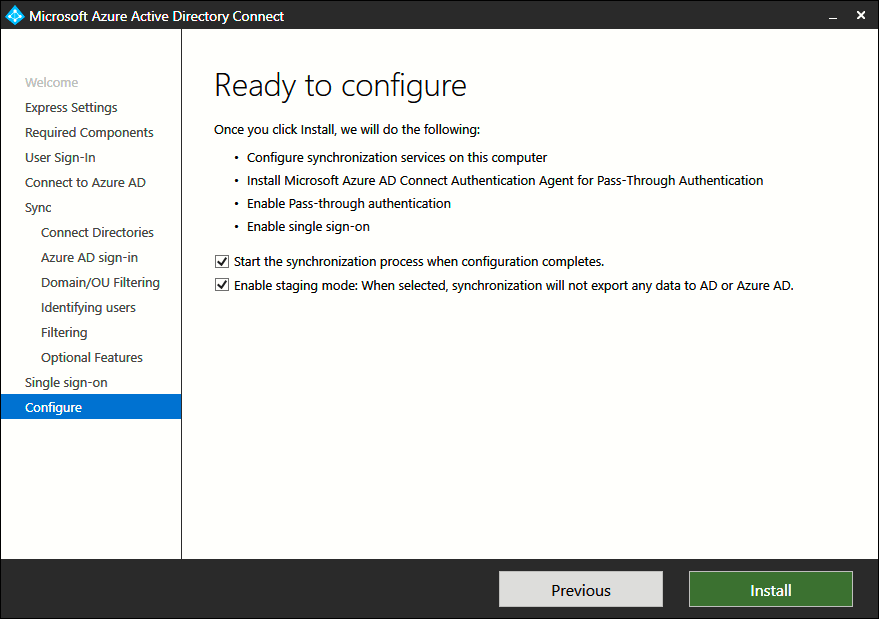 Ja, Sie müssen Azure AD Connect auf Ihrem sekundären Server installieren und manuell konfigurieren. Der entscheidende Unterschied liegt jedoch im letzten Bildschirm des Azure AD Connect-Assistenten, der in Abbildung 2 dargestellt ist.