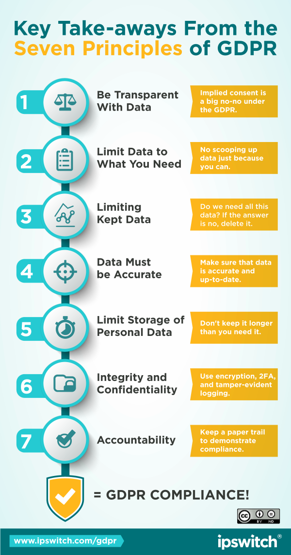 Grundsatz 7 stellt kurz und bündig fest, dass "der Verantwortliche für die Einhaltung [der vorherigen Grundsätze] verantwortlich und in der Lage ist, die Einhaltung dieser nachzuweisen."