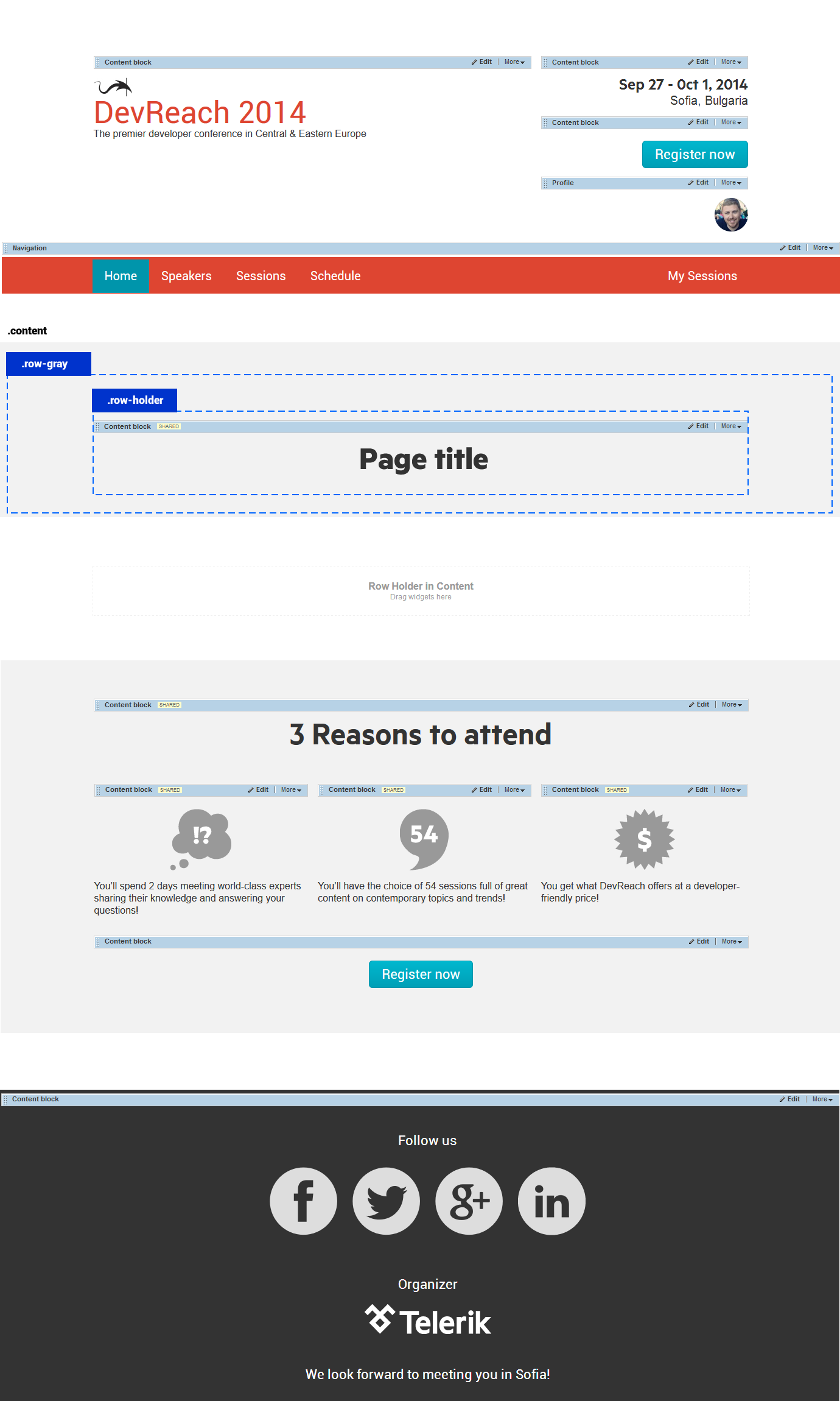 DevReach site: Overview of pages and page templates