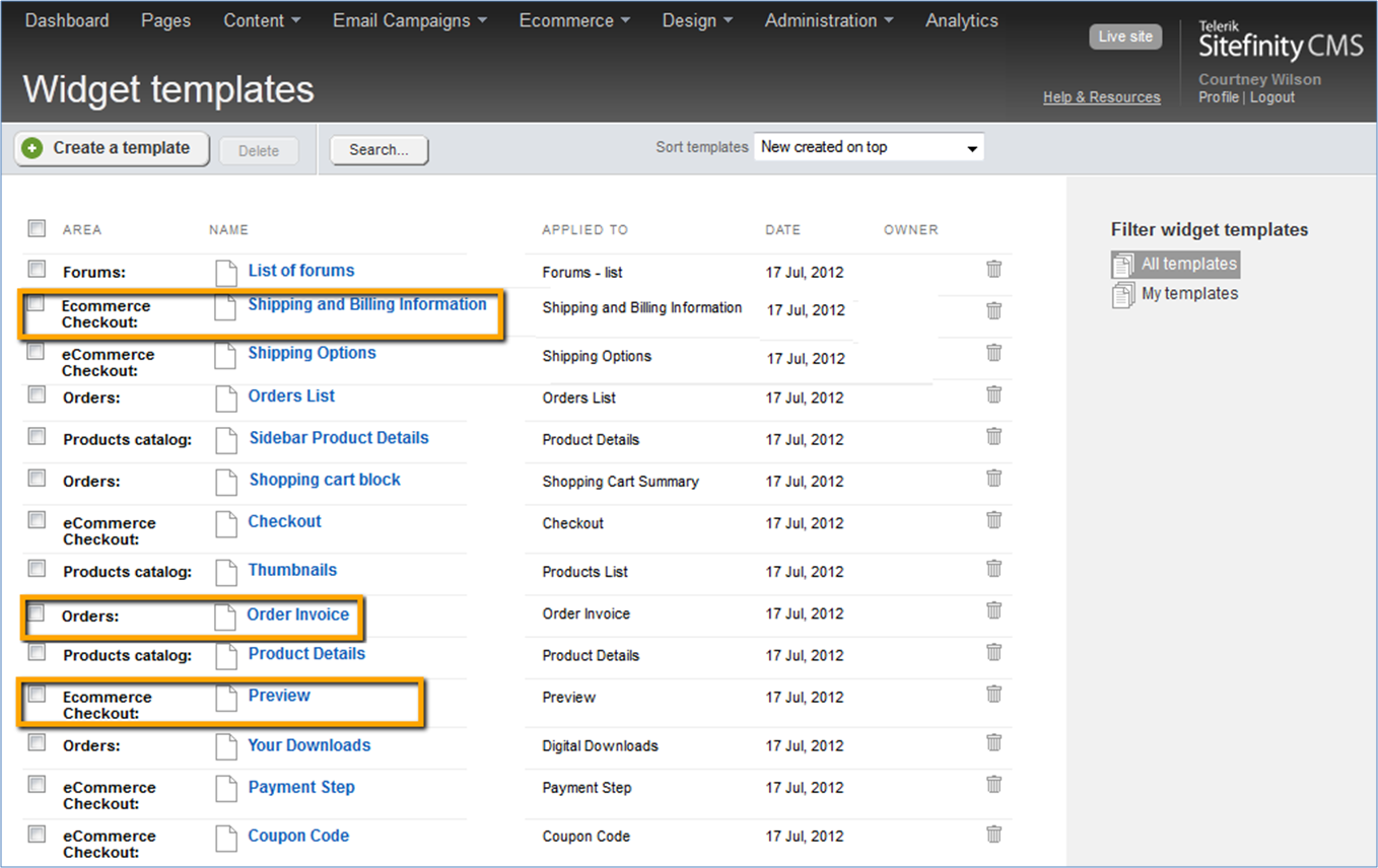 The first step in the example is to modify the templates of the Checkout widget. In them you have to add UI controls for the custom fields. In this example you will create the following fields:
