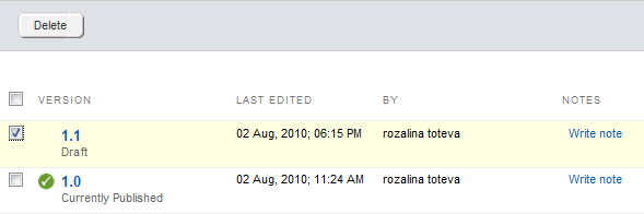 NOTE: You cannot delete the version that is currently published.