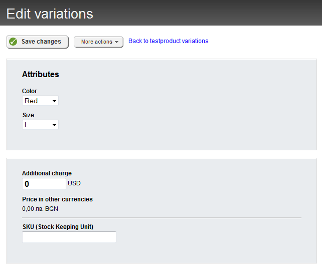 After upgrading to Sitefinity CMS 6.1 all of the old variations will keep the selected attributes with their respective values that have been specified but they also will receive all other attributes that are applied to the product type which this variation belongs to. However these attributes won’t have any assigned values. Due to that fact it’s essential for you to manually merge your variations.