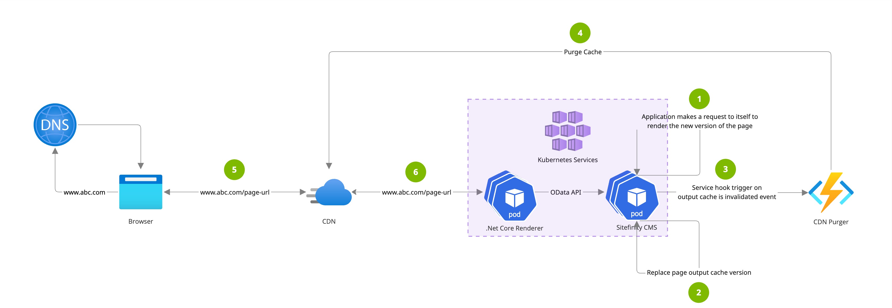 1. Output cache version of the page is updated or invalidated after which IOutputCacheInvalidationEvent event is fired.
