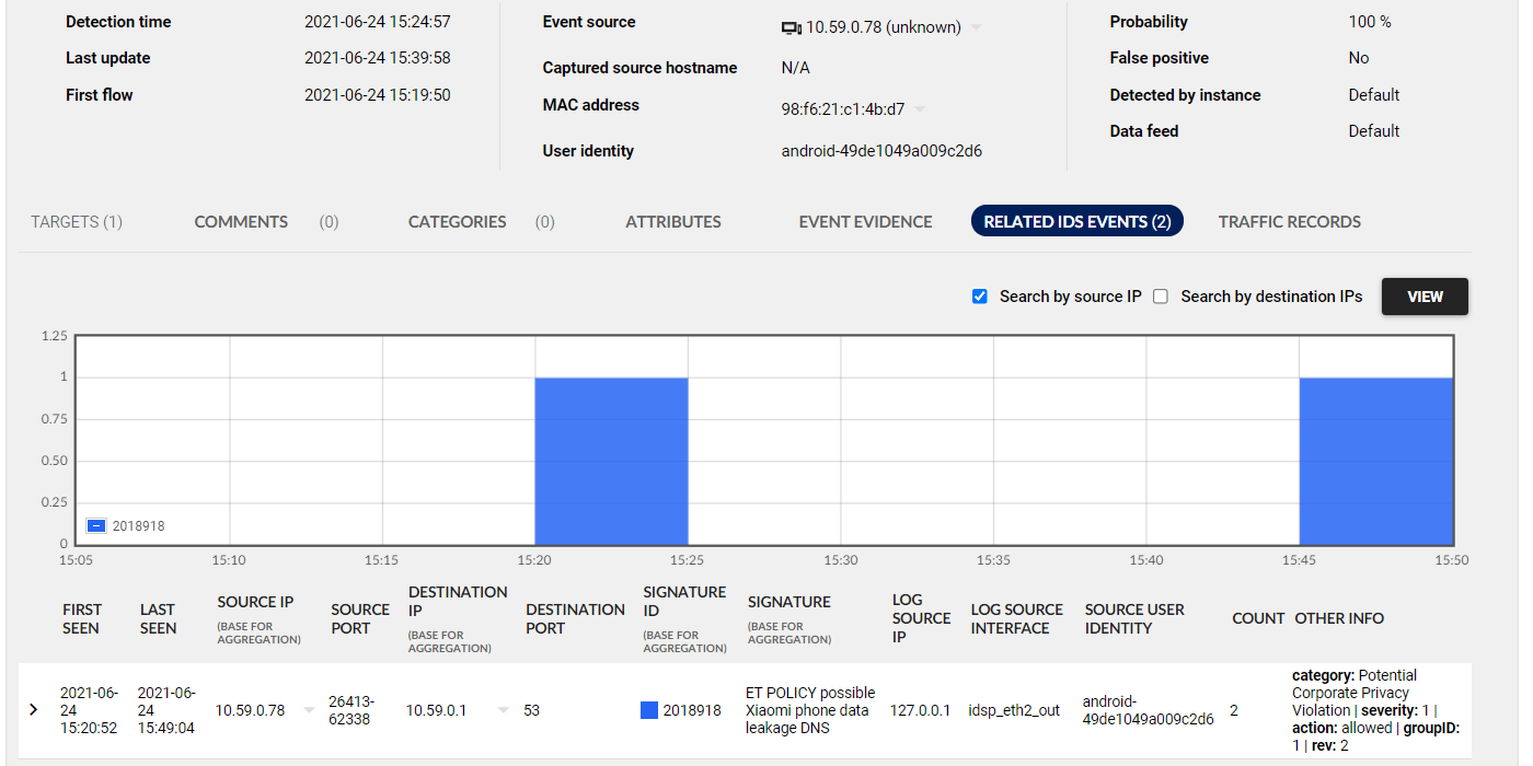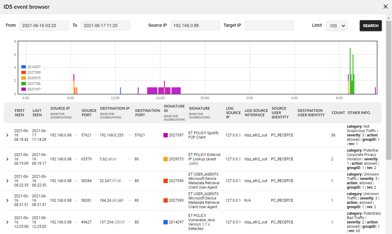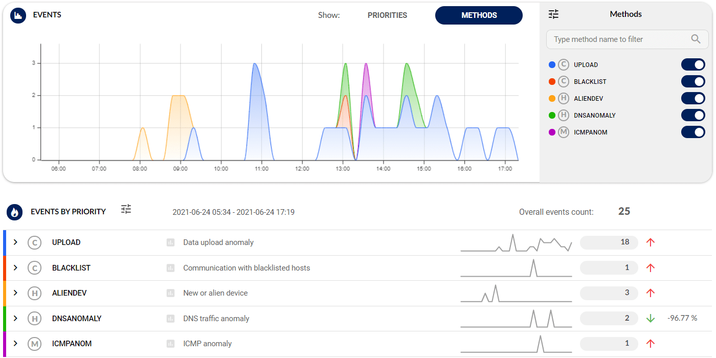 Flowmon ADS incluye un recopilador IDS integrado que recibe eventos de Flowmon IDS Probe con tecnología Suricata y permite que el sistema cubra más vectores de ataque al combinar lo mejor de los dos enfoques sin firma y basados en firmas.