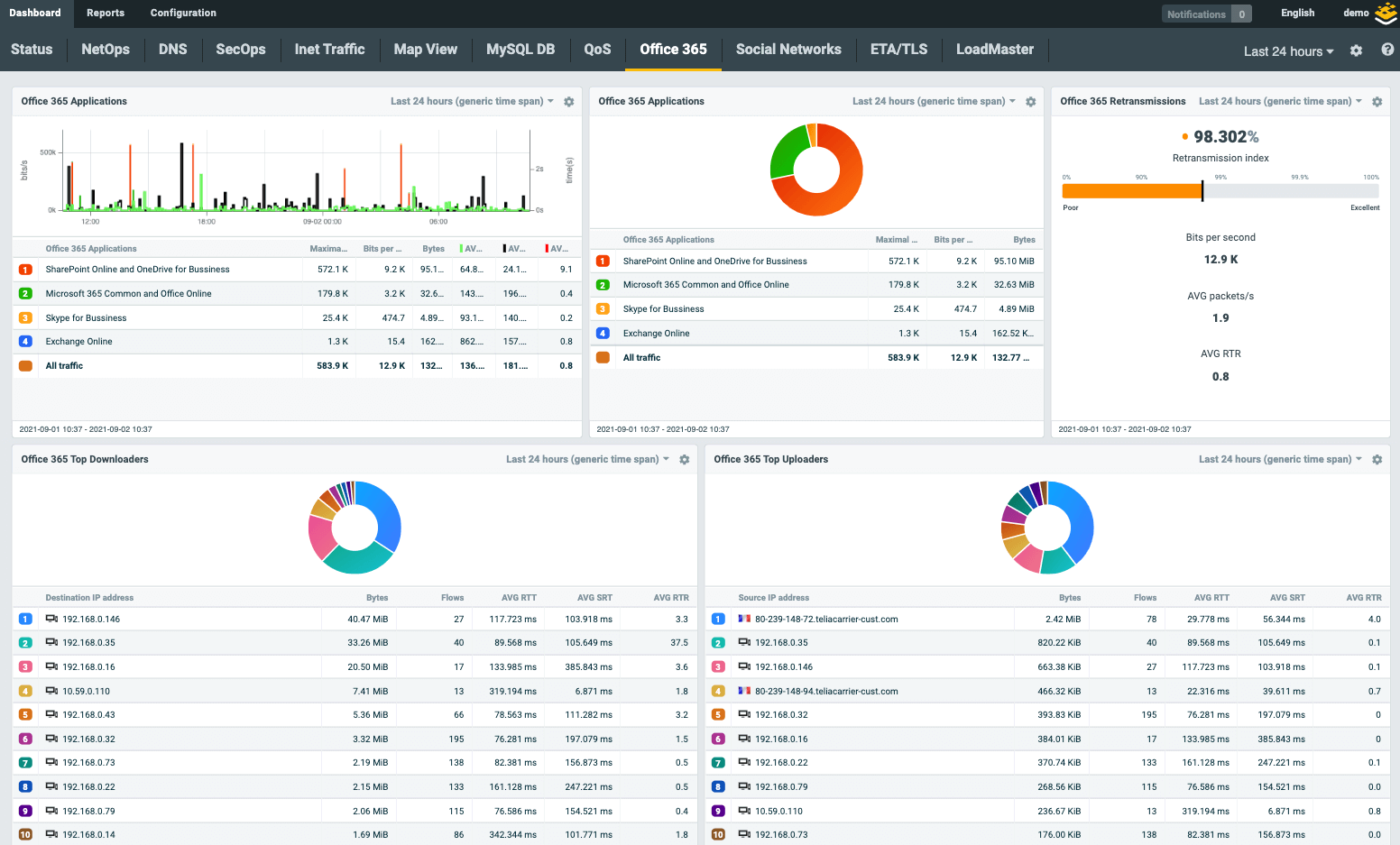 Flowmon shows how much traffic is generated by sources, destinations, devices, users, applications and protocols, and enables to accurately assess the network impact of delivered services.