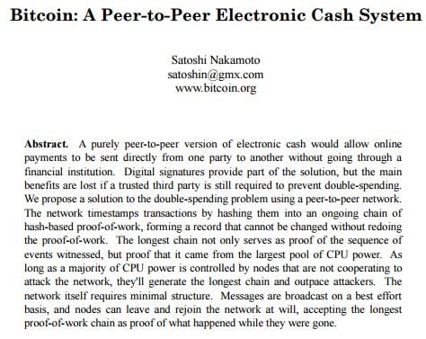 Après le départ de Satoshi en 2010, le projet a été repris par des développeurs et est devenu un code open-source, consultable publiquement et pouvant être modifié par tout le monde. Ce développement décentralisé est intervenu après le krach financier de 2008, qui a suscité une méfiance fondamentale à l'égard d'une économie centralisée. Vous trouverez ci-dessous un extrait du livre blanc original de Satoshi :