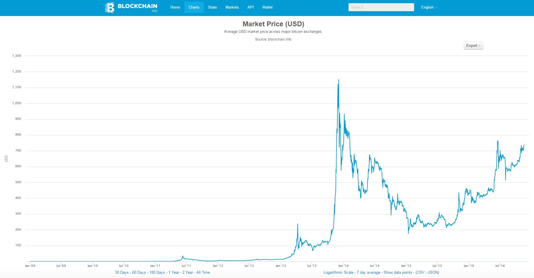 Finalement, les systèmes permettant de miner des bitcoins sont devenus plus puissants, au point de créer des dispositifs tels que les Bitclouds, où il est possible d'acheter un espace serveur sur un réseau massif pour miner. Cette explosion du nombre d'utilisateurs a progressivement diminué le potentiel d'investissement pour les particuliers ne disposant pas de fermes de serveurs. La valeur du bitcoin par rapport au dollar américain a continué à grimper, mais le potentiel de minage du bitcoin et de réalisation de bénéfices a diminué. Comme vous pouvez le voir sur le graphique ci-dessus, le prix est assez volatile par rapport à une monnaie contrôlée centralement.