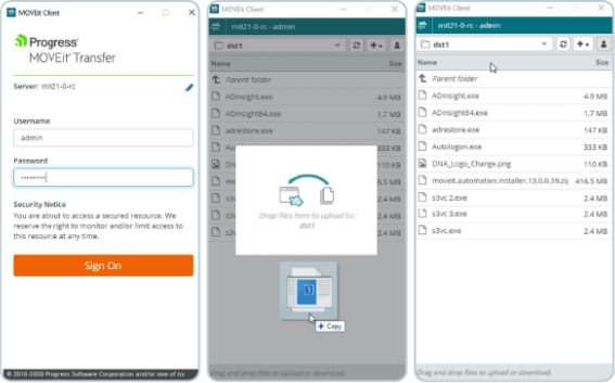 Permettre aux utilisateurs d’effectuer des transferts de fichiers sécurisés rapides et faciles avec MOVEit. Les fonctionnalités simples de drag & drop dans une interface utilisateur dynamique facilitent le téléchargement sans formation ni expertise requises.