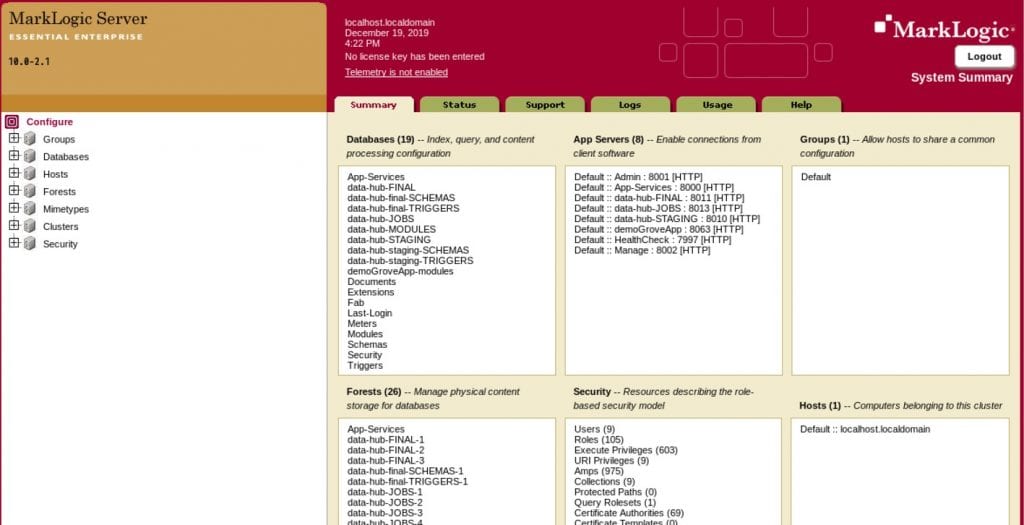 すると、data-hub-STAGINGとdata-hub-FINALという2つのデータベースと関連するデータベースが作成されていることがわかります。