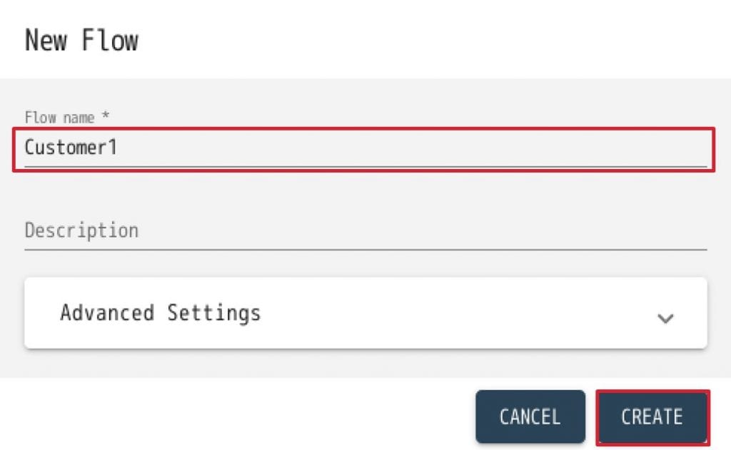 3. Flowの作成画面が出てきますので、下記の通り設定し、”CREATE”をクリックします。