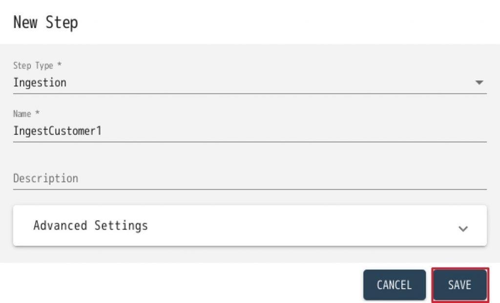 7. IngestCustomer1というStepが作成されますので、下記の通り設定します。