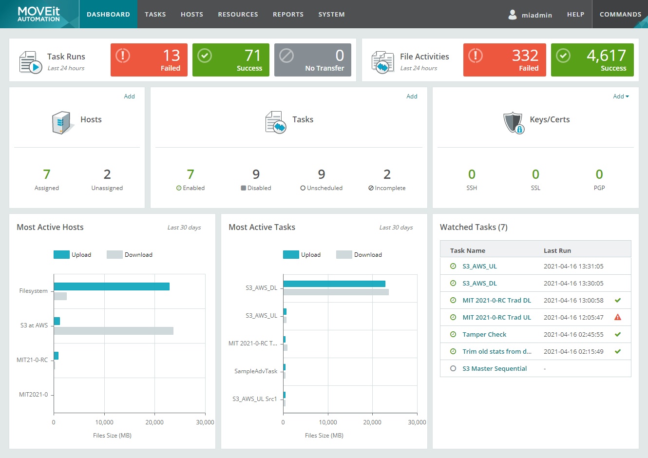 Nosso software de automação campeão para MFT (transferência de arquivos gerenciada) simplifica a criação de fluxos de trabalho padronizados e permite garantir a confiabilidade, a segurança e a conformidade de uma maneira muito mais fácil. MOVEit Automation funciona com MOVEit Cloud, MOVEit Transfer, serviços de nuvem híbrida (AWS S3, Azure Blob, SharePoint, etc.) ou qualquer sistema FTP para oferecer funcionalidades avançadas de automação de fluxo de trabalho sem a necessidade de desenvolver scripts. Ao contrário das ofertas da concorrência, o MOVEit Automation é compatível com um número ilimitado de servidores gerenciados, milhares de tarefas e uma implantação de tarefas pré-configurada ao estilo apontar e clicar.