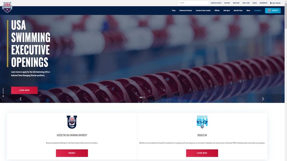 USA Swimming's website for members and non-members offers education, marketing resources, training tips, news, events details, competition results, ticketing information and videos. Unfortunately, the website was having trouble handling visitor traffic loads during peak times such as the Olympic Trials and the Olympic Games in the Olympics prior to 2024.