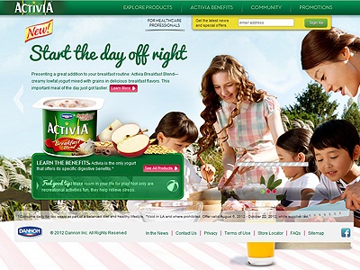 Visit SiteActivia is a brand of The Dannon Company, America's founding national yogurt company. With its strong commitment to high-quality, wholesome, and innovative products, Dannon is a recognized leader for its contributions to nutrition and health. The main goal of the US website is to present the full Activia product portfolio and engage with the Activia community.