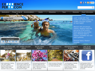 Visit SiteThe main objective of the Experience Perth website is to offer a user-friendly guide of the different destinations and to present accommodation options, upcoming events and must see attractions. The website includes information and booking facilities for both overseas and domestic tourists.