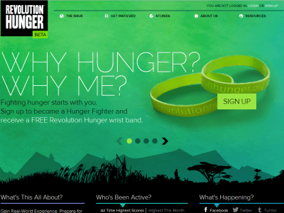 Visit SiteRevolution Hunger is a campaign that harnesses the power of teens to make a lifelong commitment to take on the problems of hunger and malnutrition around the world. The main goals of the website are to gather publicity for the clause, attract new members and also drive engagement.