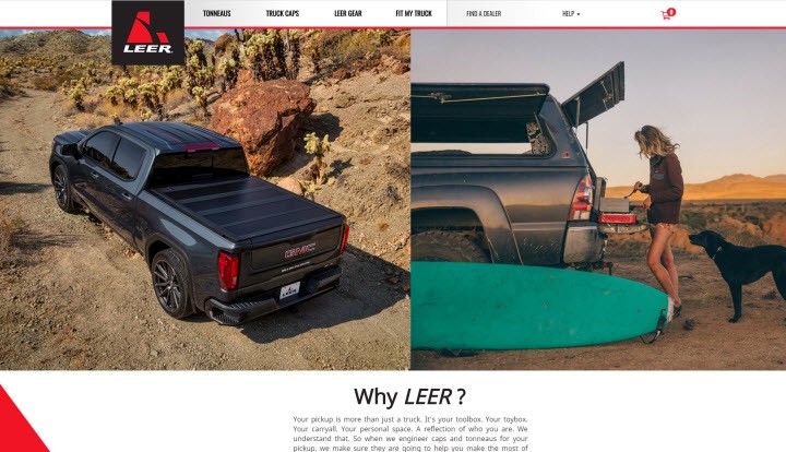 Leer leverages SmarterCommerce to effectively showcase its trucks and equipment, as well as facilitate purchases. Additionally, they integrate with Etools for vehicle fitment and Google Maps for dealer locator, creating a seamless experience from store to online. Site Sync facilitates faster transitioning from development to staging and to production deployment.