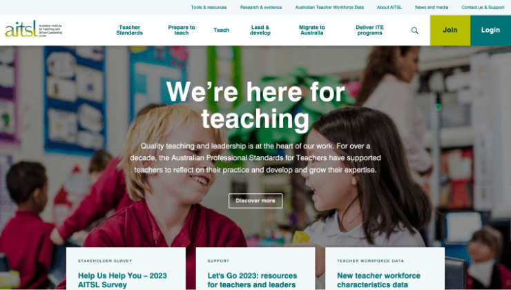 The Australian Institute for Teaching and School Leadership (AITSL) supports the successes of teachers and school leaders at every stage of their career. AISTL’s newly enhanced site provides teachers with the resources and platforms they need to improve their practice. To help solve these challenges AITSL in collaboration with Websilk digital agency created digital opportunities for teachers to engage AITSL to maximize their teaching ability. This engagement and support have been provided by utilizing strong digital platforms like the Sitefinity CMS to enable the capacity to deliver unique experiences for teachers.