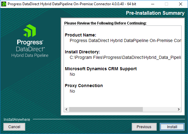 Fig: Hybrid Data Pipeline – On Premise Connector Pre Install Summary